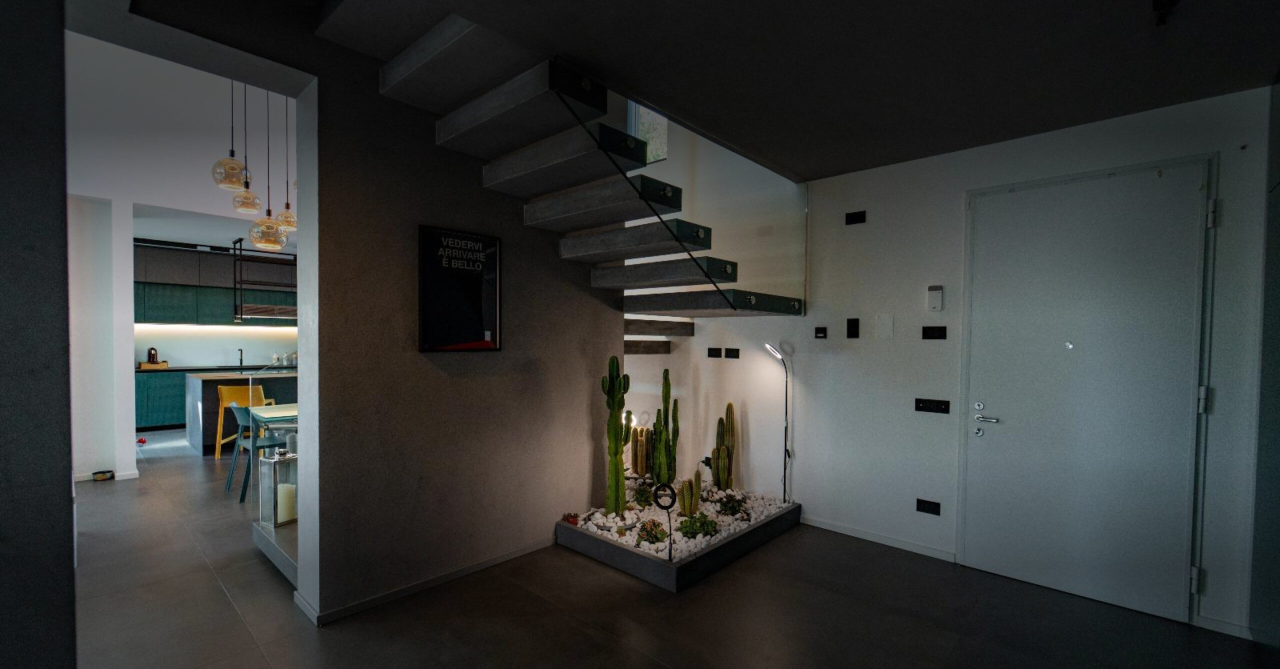 Abbiamo proposto una cucina Arrital, perfetta sintesi di design italiano e versatilità, arricchita da finiture ricercate e ampi spazi contenitivi. Per i rivestimenti e i pavimenti, sia in cucina che nei bagni, abbiamo scelto materiali firmati ABK e Imola Ceramiche, sinonimo di eleganza e durabilità. Le texture materiche e le tonalità neutre hanno conferito coerenza estetica e armonia all’intero progetto. Il risultato è una casa dal carattere forte e raffinato, che riflette appieno le esigenze e la visione dei suoi proprietari.