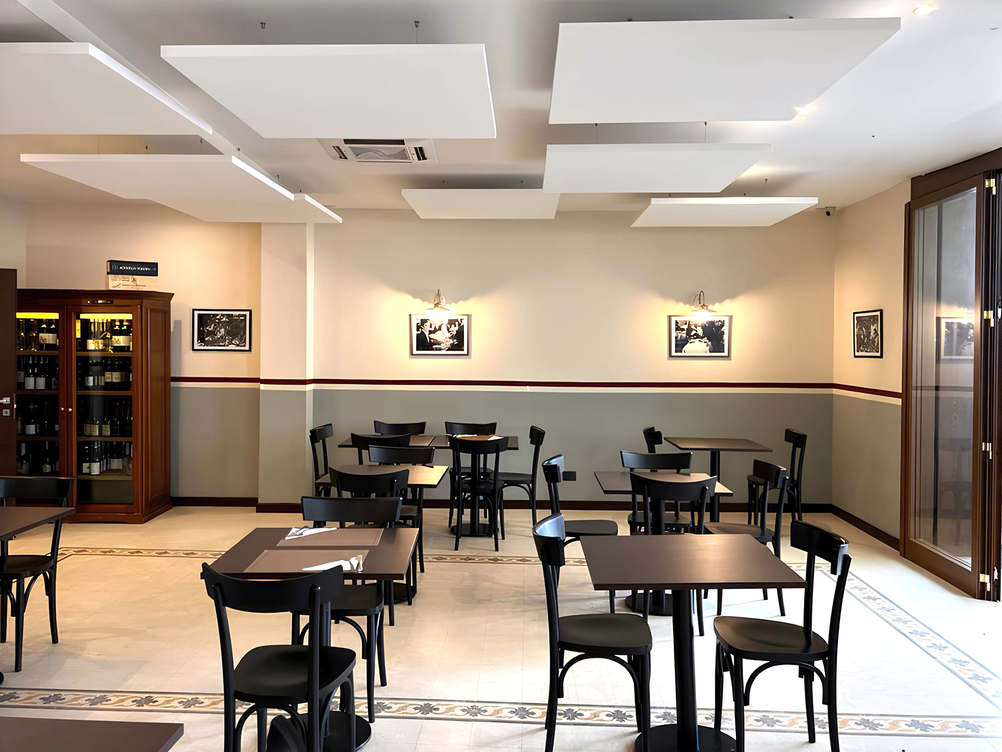 Assicurare un elevato comfort acustico all'interno del locale per offrire un'esperienza eccellente, facilitando la conversazione, incoraggiando a rimanere più a lungo e a consumare di più. Migliorare la qualità lavorativa del personale impiegato, prevenendo lo stress acustico durante tutta la giornata lavorativa, aumentando così la produttività e la cordialità verso i clienti.